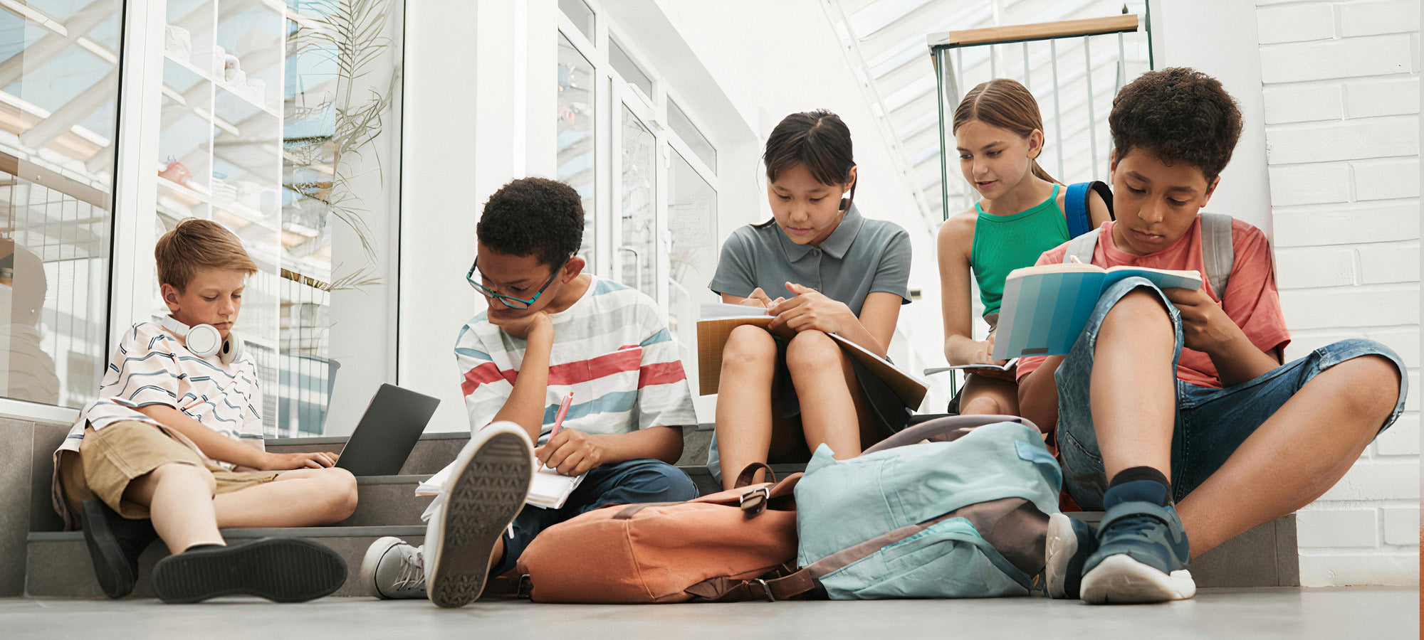 Wat een fijne koptelefoon voor de kinderen! Ze kunnen mij nog wel horen maar toch geconcentreerd werken, afgesloten voor de ruis.